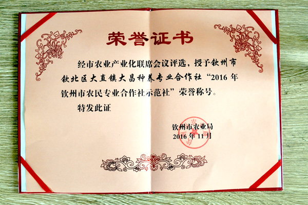 示范合作社荣誉证书